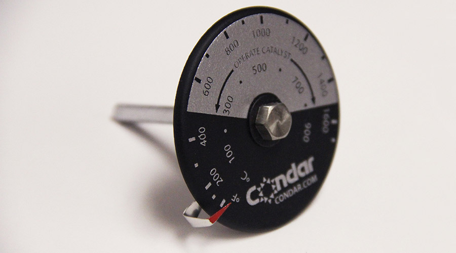 indispensable tool for efficient wood stove operation, our thermometer show when to switch off bypass, and when to reduce